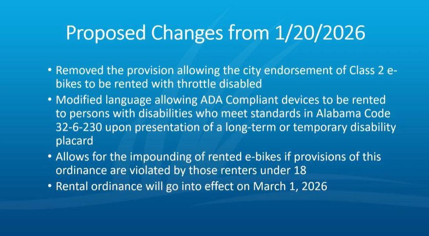 The Gulf Shores City Council approved changes to the city’s new ordinance regulating e-bikes this week.