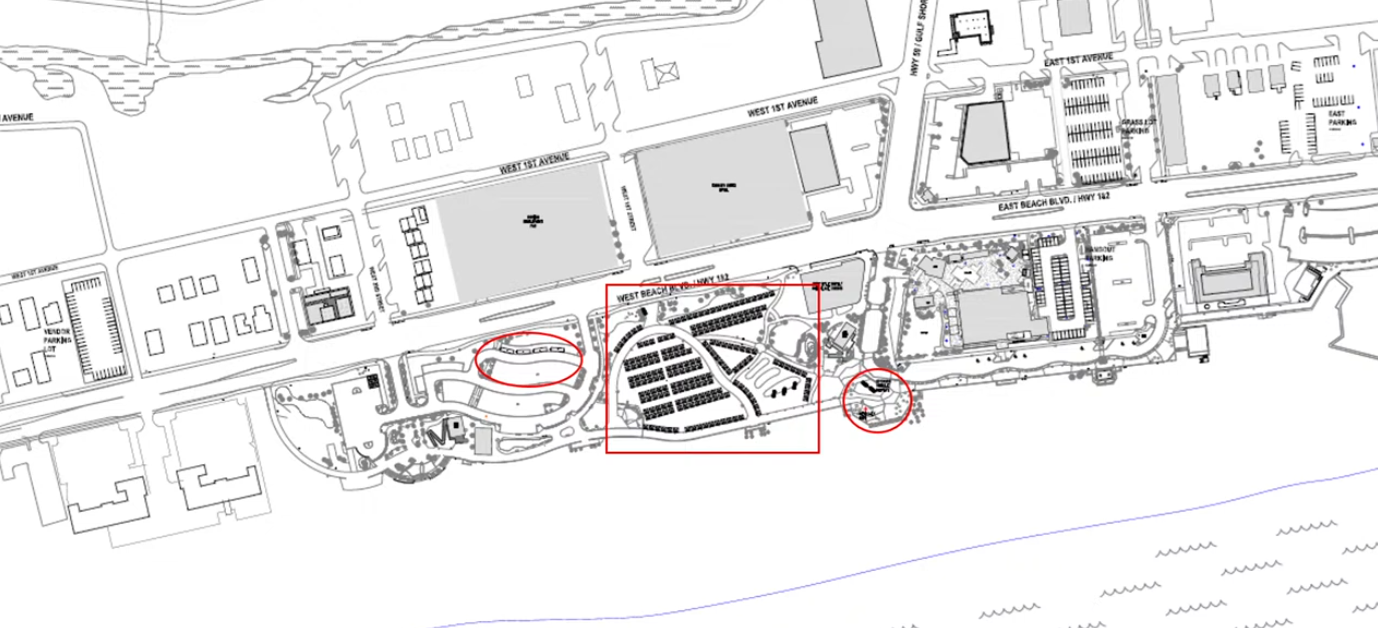 The Gulf Place property will be the location of Hangout Vendor Village, with the primary request being to set up tents on the town green featuring jeep accessories, gear, and a custom jeep showcase, as well as performances at the Hangout's courtyard.