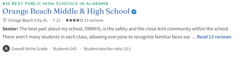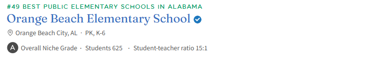 According to the Niche website, here are the Orange Beach School rankings in the State of Alabama: