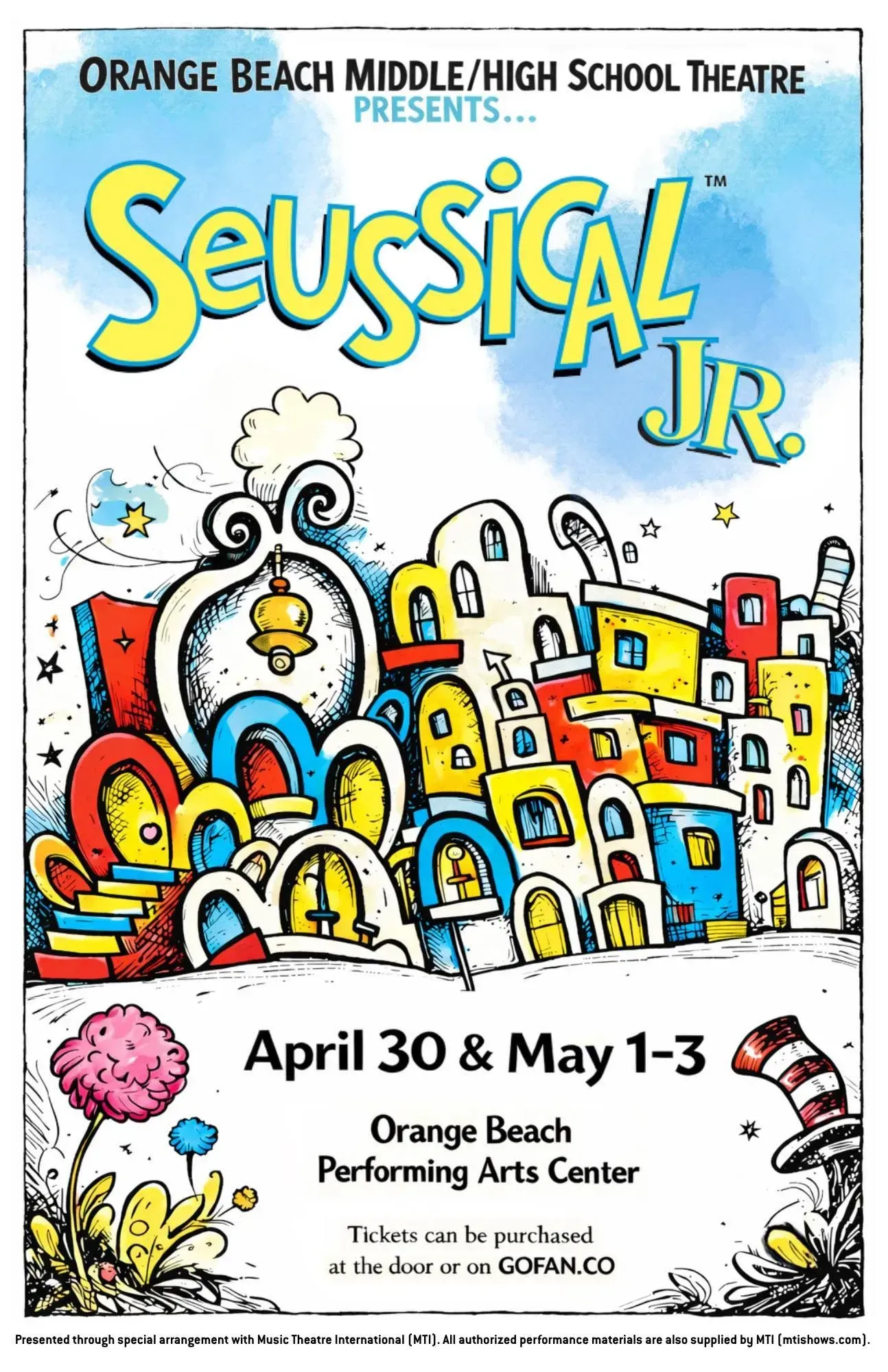 Get ready to journey into the world of Dr. Seuss! The Orange Beach Middle High School Theatre program is bringing Seussical Jr., the Musical to life at the Orange Beach Performing Arts Center, featuring the energy and talent of its middle- and high-school performers. Directors and staff promise a family-friendly experience filled with familiar stories, lively songs, and colorful staging that showcases the students' hard work.